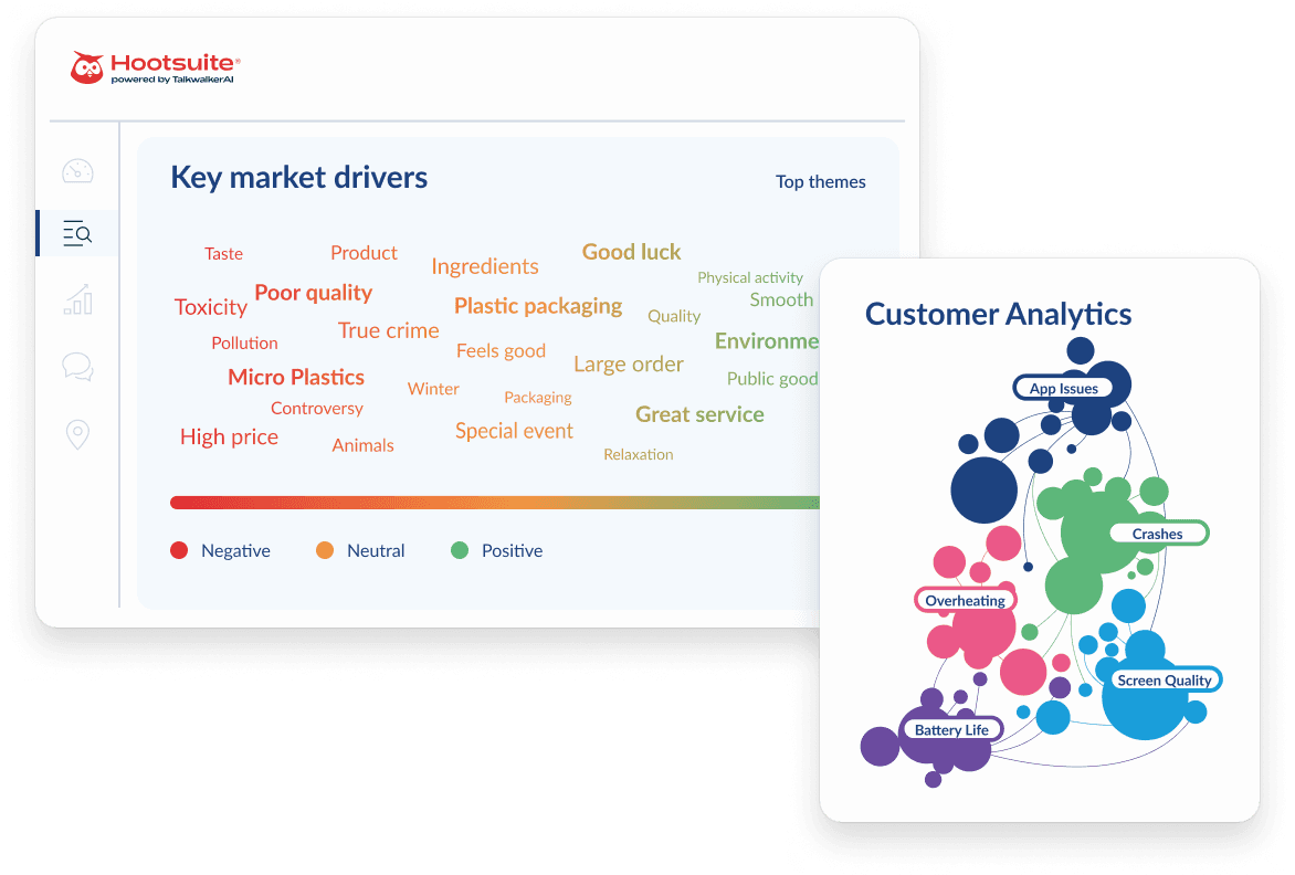 Surface emerging trends, quantify sentiment, uncover key influencers, and connect performance to revenue with Hootsuite powered by Talkwalker AI.