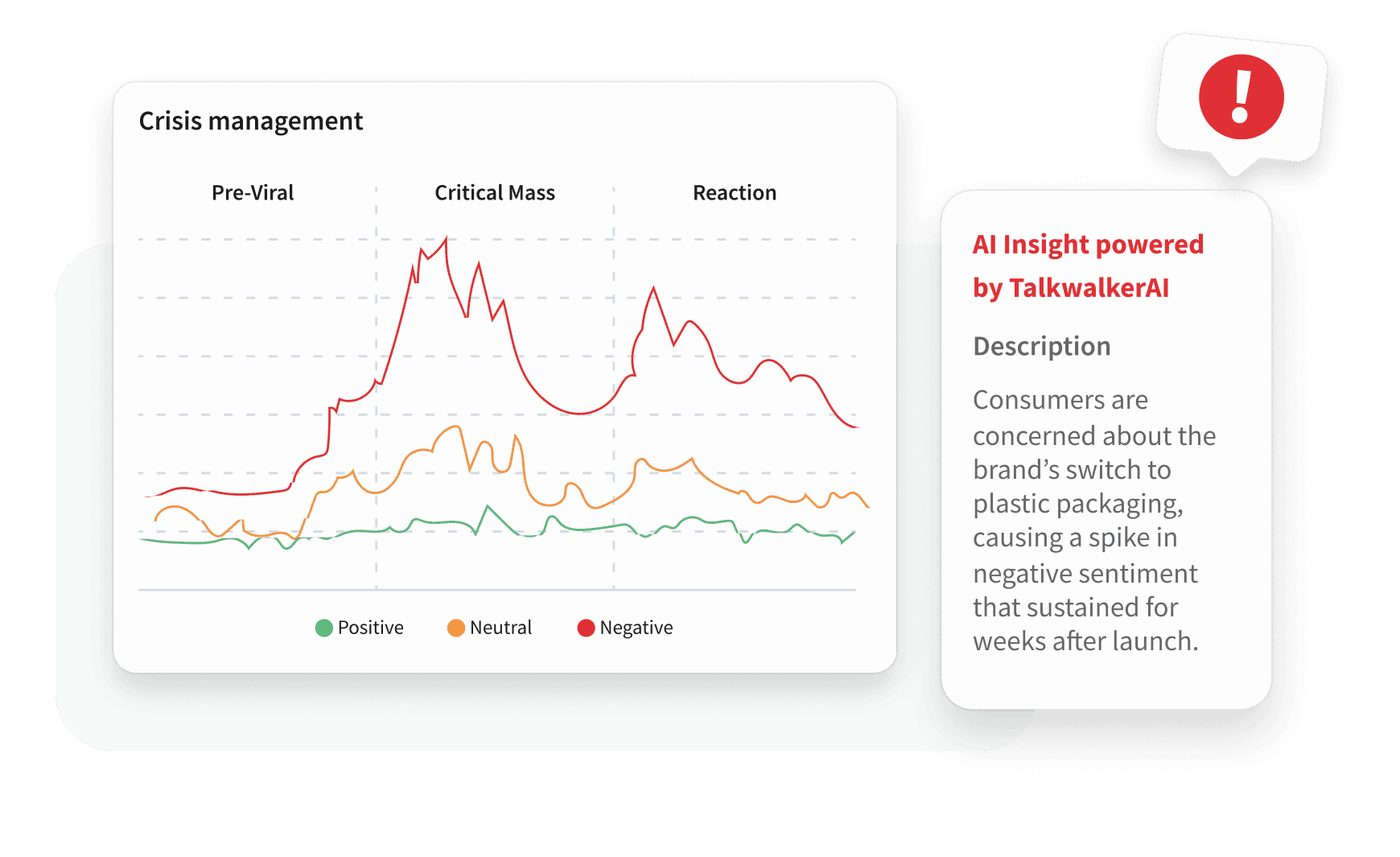 Stay on top of unusual spikes in mentions, negative sentiment shifts, and fast-moving narratives. With AI-powered anomaly detection, real-time alerts, impact tracking, and timeline analysis, you’ll always know if a crisis is unfolding.