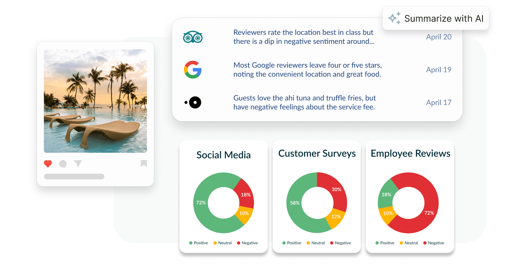 Hootsuite powered by Talkwalker AI collects reviews from social networks, review sites, forums, and the open web. AI analyzes sentiment, themes, visuals, and reviewer demographics — turning raw feedback into insights your teams can act on.